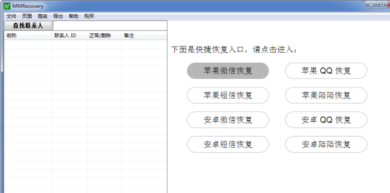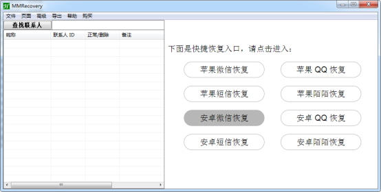 本文所使用的微信恢復工具名稱是 MMRecovery。該工具是一個全面的手機通訊消息的恢復軟件,可以實現對安卓和蘋果手機微信、QQ、短信以及陌陌等刪除聊天記錄的快速恢復。