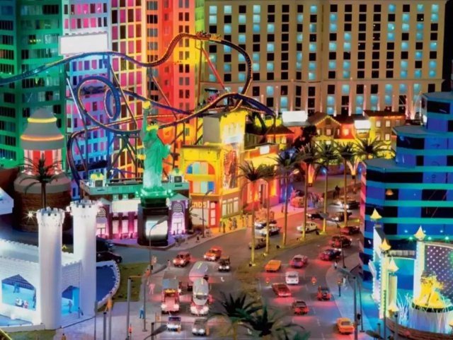 拉斯維加斯仍然是整個微縮景不雅觀世界中最為燈火輝煌之處,這里安置有整個微縮景不雅觀世界近十分之一的LED燈