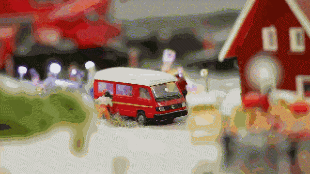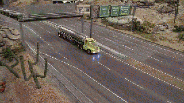車子在微型世界里開來開去,取景也像在真實(shí)世界里一樣!