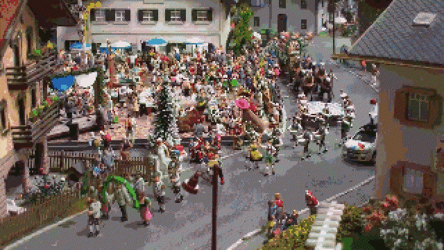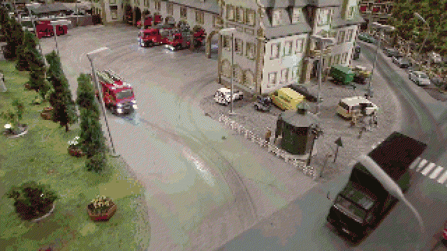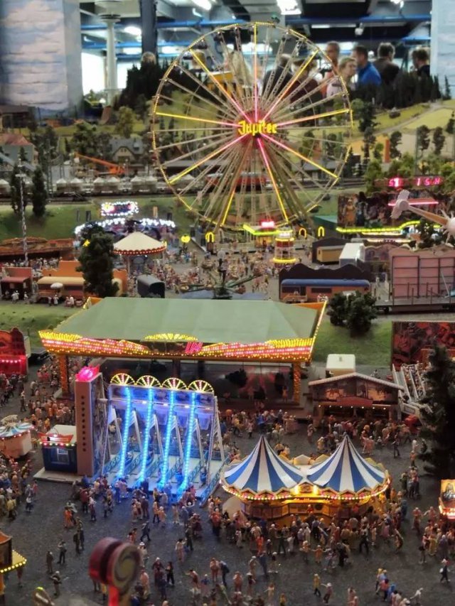 幾百輛火車錯落地穿行于山洞隧道、平原森林,在各個國家之間有條不紊地運(yùn)行,在各種訊號燈的調(diào)控下,精準(zhǔn)地交錯運(yùn)行。高山的滑雪者、漢堡機(jī)場飛機(jī)起降、消防車救火、大型的游樂場景...精微傳神的動態(tài)場景,令人嘆為不雅觀止。
