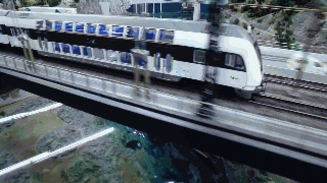 差別標(biāo)的目的的列車,運(yùn)行于山間的隧道和高架橋