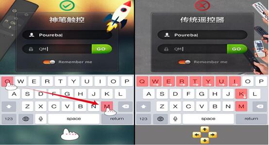 市面上的智能電視和智能投影存在一個致命缺陷,按鍵遙控操作機械僵硬,不人性化。好比想搜索一個影視劇的時候,傳統(tǒng)遙控器只能一個個鍵慢慢移動,容易卡頓或出錯,最常見的輸入WIFI密碼,經(jīng)常出錯,一個 8 位數(shù)的密碼要花上 3 分鐘才能完成,簡直抓狂。而神畫科技通過其特殊的光學設計、紅外線感應技術加上獨特的軟件算法,實現(xiàn)了投影畫面的精準觸控操作,很好解決了這一槽點,只需動動手指,指哪到哪,欄目選擇隨心所欲,輸入WIFI密碼幾十秒就可以輕松搞定。