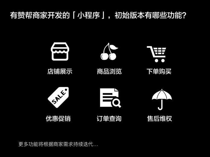 自微信開發(fā)“小程序”時,有贊微商城、有贊零售就已同步開發(fā)、支持商家通過有贊一鍵生成小程序,并擁有多種模板、優(yōu)惠促銷、在線購買等強大功能?,F(xiàn)在,商家只需要在小程序后臺填寫門店地點信息,位于門店附近的用戶進入微信界面后,即可看到商家的小程序,占“附近的小程序”先機。