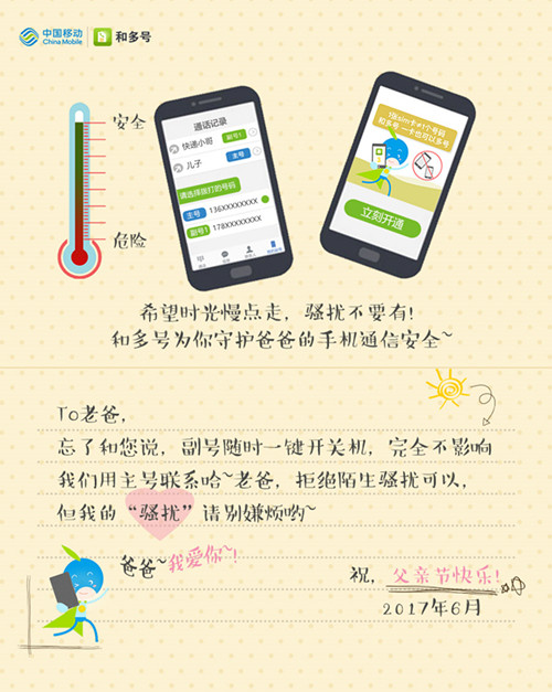 我再接再厲:“爸,我知道您走在互聯(lián)網(wǎng)浪潮前端,不如我再送你一個(gè)互聯(lián)網(wǎng)專(zhuān)屬通行證吧,包您滿意!不換手機(jī)、不加SIM卡,您的愛(ài)機(jī)在原號(hào)碼(主號(hào))基礎(chǔ)上輕松增加一個(gè) 11 位手機(jī)號(hào)碼作為互聯(lián)網(wǎng)沖浪專(zhuān)用號(hào)(副號(hào))。以后網(wǎng)購(gòu)收快遞、打車(chē)、聯(lián)系陌生人就用這個(gè)號(hào)碼,聯(lián)系家里的親戚伴侶還是用本來(lái)的號(hào)碼。讓您玩轉(zhuǎn)互聯(lián)網(wǎng),還能掩護(hù)隱私信息安適……”“兒子,你太out了,你說(shuō)的是和多號(hào)吧?我已經(jīng)有啦,你看我收件填寫(xiě)的號(hào)碼就是和多號(hào)喲!”老爸帶著老花鏡刷著手機(jī)回答道。
