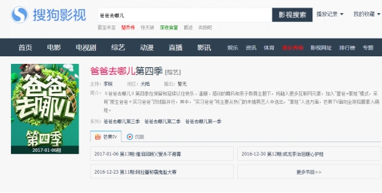 《爸爸去哪兒》是一個親子戶外真人秀節(jié)目,“星爸+萌娃”模式一推出就受到了大家的歡迎,在快樂、溫暖、感動的畫風(fēng)和親子教育主題下,給 80 后父母們展示出一部生活教育百科全書,更符合我們這一代人的口味??础栋职秩ツ膬骸?,,就在搜狗影視。