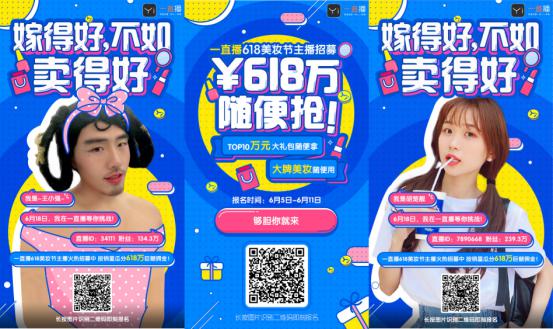 自 6 月 5 日起,一直播已經(jīng)開始為“美妝節(jié)”活動預(yù)熱,發(fā)起主播招募令,眾多主播根據(jù)銷售額瓜分 618 萬巨額傭金,最終活動銷售TOP10 主播更有萬元大禮包豪華獎(jiǎng)勵(lì),活動期間主播們更能在直播間中免費(fèi)使用各種大牌化妝品,誘惑力空前!