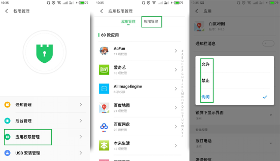 而Flyme手機(jī)管家可讓用戶點(diǎn)對(duì)點(diǎn)辦理每個(gè)所安置應(yīng)用的權(quán)限,用戶可以按照實(shí)際情況設(shè)置應(yīng)用的權(quán)限為“禁止”“詢問(wèn)”“允許”,防止出現(xiàn)有些應(yīng)用借機(jī)竊取用戶聯(lián)系人信息、定位信息等隱私的情況。