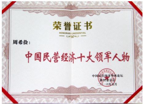 周希儉榮獲“中國民營經(jīng)濟(jì)十大領(lǐng)軍人物”稱號