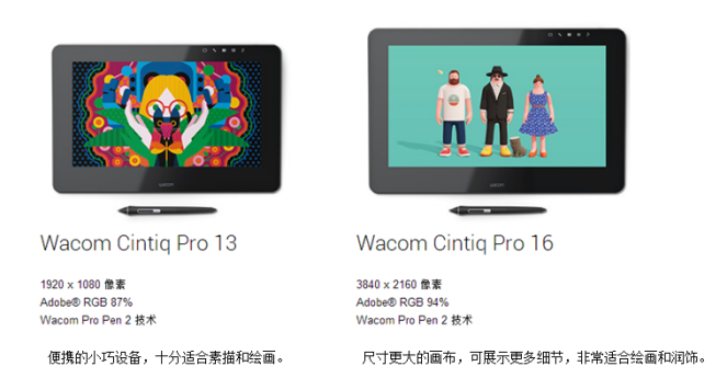 16 的上市,Wacom 新帝Pro16 與Wacom 新帝Pro13 比擬較,兩款產(chǎn)品都兼容Mac和PC,Wacom 新帝Pro