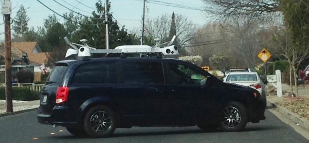2015 年 2 月,蘋果一輛汽車在庫比蒂諾總部附近被拍到,頂部安置了攝像頭、LiDAR 傳感器(測距雷達)、GPS定位天線,可以為無人駕駛收集基礎數(shù)據(jù)。