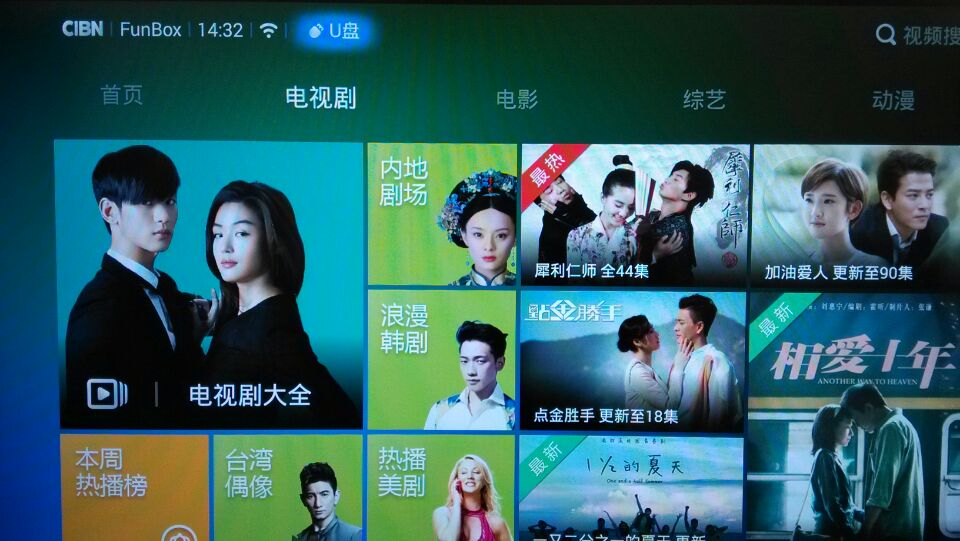 2.中興云盒插入U(xiǎn)盤,首頁左上角有U盤的快捷入口;