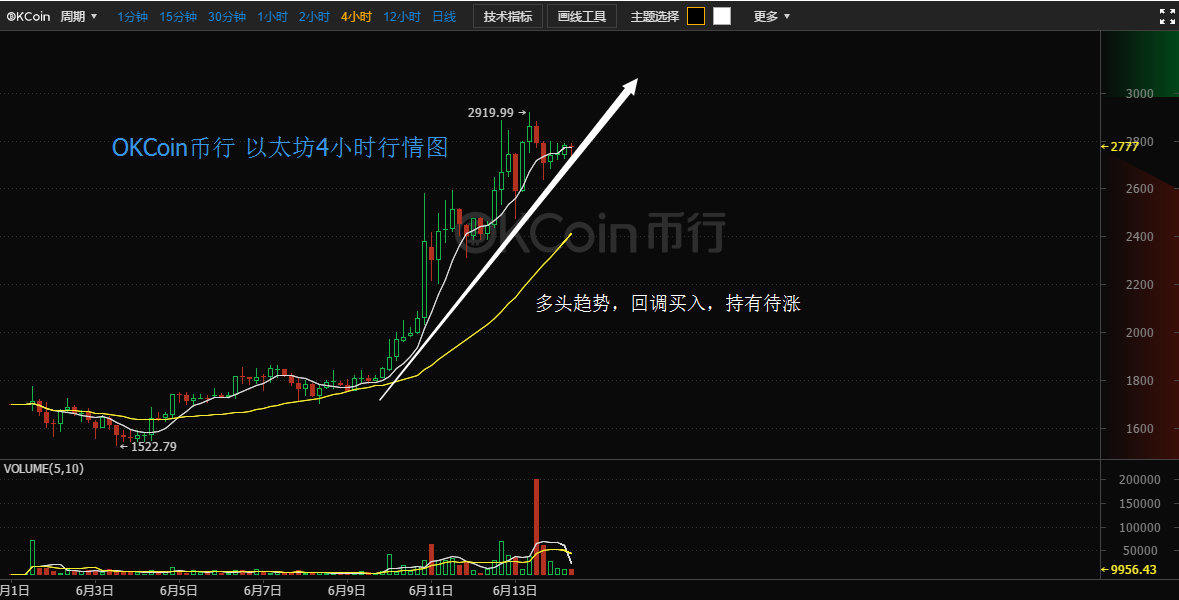 OKCoin幣行分析師稱, 4 小時圖,回調(diào)幅度較小,k線形態(tài)變小,多空達成暫時平衡,均線系統(tǒng)呈現(xiàn)多頭擺列運行,上漲斜率陡峭,多方力量強勢,未來繼續(xù)上漲的概率非常大,可繼續(xù)逢回調(diào)做多。 1 小時圖,上漲趨勢明顯,盤整后大概率會開啟新一波上漲,牛市格局不亂,可參照 1 小時圖MA30 均線,逢回調(diào)做多,嚴(yán)格止損。