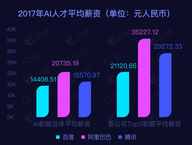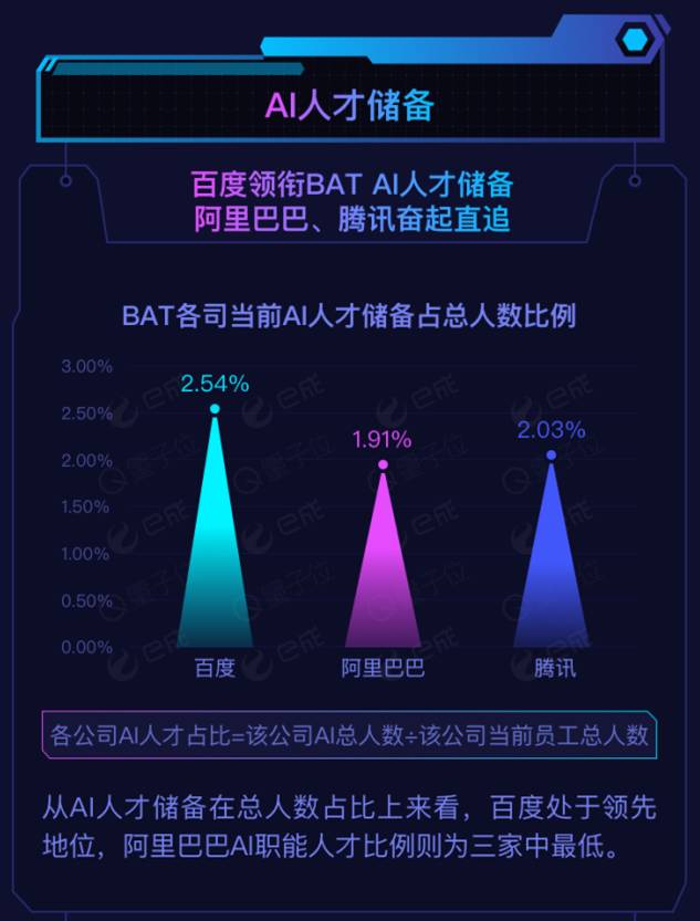 陳訴顯示,在AI人才儲(chǔ)備上,百度領(lǐng)銜,而在AI人才薪酬與不變性上,阿里巴巴獨(dú)占薪酬高地,,騰訊則最不變。