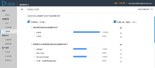 互動(dòng)問(wèn)卷就是調(diào)查問(wèn)卷的形式,差別之處在于云視互動(dòng)在常規(guī)問(wèn)卷的基礎(chǔ)上按照市場(chǎng)推廣和經(jīng)驗(yàn)積累增添了一套用戶價(jià)值算法,其中最有價(jià)值的就是標(biāo)題問(wèn)題權(quán)重的專業(yè)算法,從標(biāo)題問(wèn)題設(shè)置、權(quán)重比值到問(wèn)卷統(tǒng)計(jì)、價(jià)值排序,一氣呵成,智能評(píng)分,量化培訓(xùn)效果。