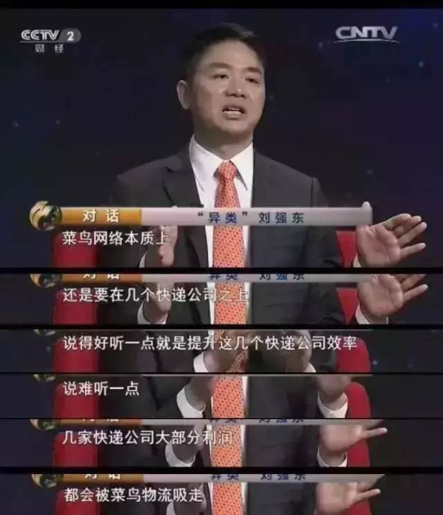 而在2016年7月,劉強(qiáng)東在央視《對(duì)話》節(jié)目中直言,菜鳥物流就是在為幾家物流公司搭建系統(tǒng),說得好聽是提升這幾家快遞公司效率;說得難聽點(diǎn),這幾家公司的大部分利潤都是被菜鳥物流給吸走。