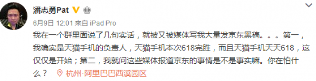 天貓手機(jī)負(fù)責(zé)人潘志勇在京東的“618”之前搞了波事。“618”可是京東搞出來對(duì)抗阿里“雙十一”的。