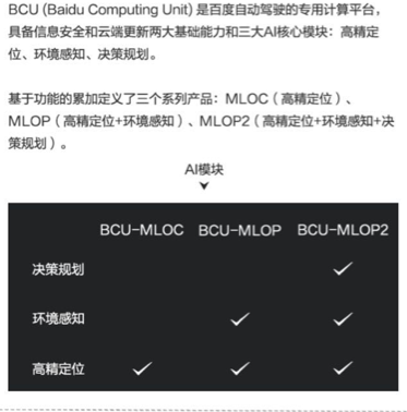 BCU具備信息安適和云端更新兩大基礎(chǔ)能力和三大 AI 核心模塊:高精定位、環(huán)境感知、決策規(guī)劃?,F(xiàn)在開發(fā)出來的三個手掌大小的系列產(chǎn)品: