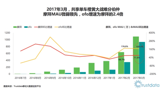 而更值得一提的是,Trustdata發(fā)布的Q1 數(shù)據(jù)顯示,ofo月活用戶的環(huán)比增速已連續(xù) 7 個月超越行業(yè)第二。而目前,ofo的 4 月用戶增速又再次超越摩拜,創(chuàng)下用戶增速持續(xù) 8 個月的行業(yè)領(lǐng)先新高記錄,穩(wěn)步成為增長最快的共享單車平臺。不得不說,小黃車已獲得行業(yè)最多用戶的認(rèn)可,魅力已經(jīng)無可替代。
