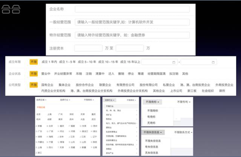 好比,以陸家嘴為中心兩公里內(nèi),注冊成立一年,注冊資金超過一億,有過一次融資,公司所屬行業(yè)是移動互聯(lián)網(wǎng)行業(yè)/P2P理財(cái),通過條件可以精準(zhǔn)地找到目標(biāo)客戶。