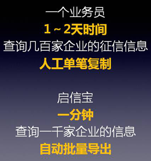 下面我們以銀行場景為例,看看啟信寶企業(yè)大數(shù)據(jù)可以為銀行業(yè)務(wù)做到些什么: