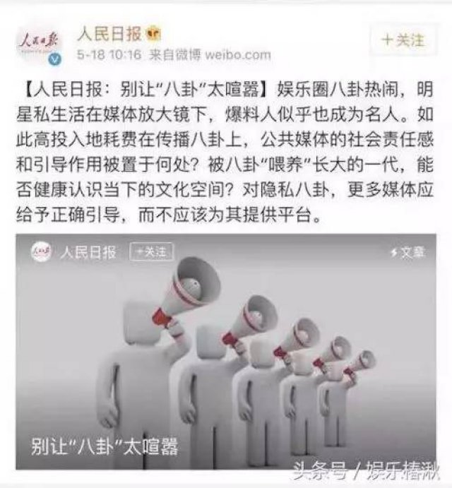 先是5月18日,《人民日報》發(fā)布《別讓“八卦”太囂張》一文。