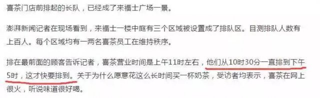 ▲ 排隊買喜茶的報道顯示,排七個小時才能喝到這口茶