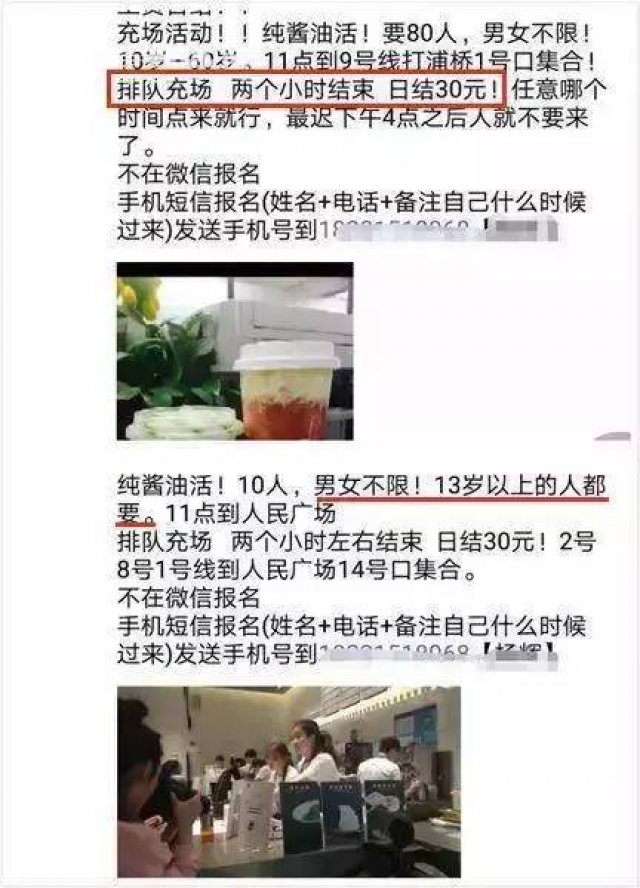 至于價格,爆料稱:黃牛們每天都會在伴侶圈里招人排隊,排隊一趟人為30塊。甚至有些姨媽,給15塊、20塊就愿意來排。