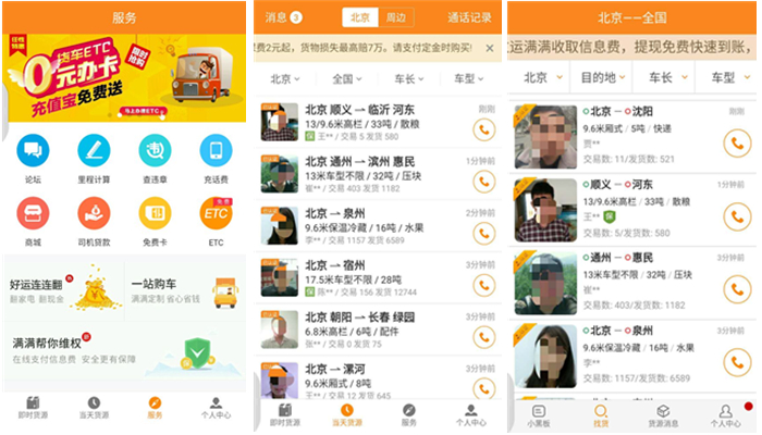 (左圖、中圖為運(yùn)滿滿司機(jī)版,右圖為貨主版,二者可打通)