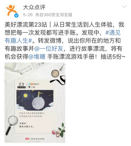 此次線上漂流活動(dòng),得到了美柚、大眾點(diǎn)評(píng)、掌閱讀書、咕咚運(yùn)動(dòng)、足記APP、荔枝FM、Camera360、墨跡天氣、抱負(fù)生活實(shí)驗(yàn)室、MEMEBOX、途牛旅游網(wǎng)、清單、搜狐快站、俏十歲、好豆網(wǎng)、小狗電器等十幾家生活方式領(lǐng)域的優(yōu)質(zhì)品牌積極響應(yīng)。