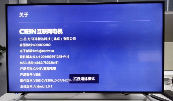 1、打開看尚電視,在設(shè)置中選擇”關(guān)于我們“,進(jìn)入后遙控器上按”上上下下左擺布右“,這時電視會提示”打開調(diào)試模式“,這樣就可以識別U盤內(nèi)的apk安置包了;