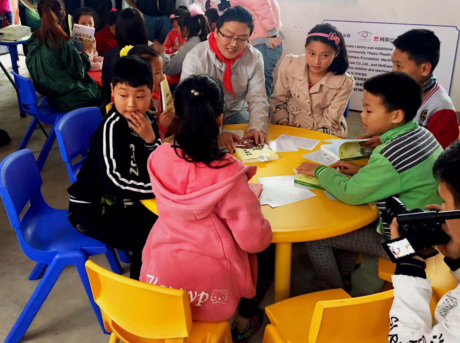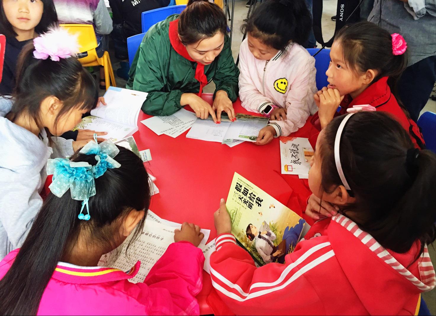 主辦方嘉賓及志愿者們與學(xué)生們一起在嶄新的閱覽室進(jìn)行朗讀