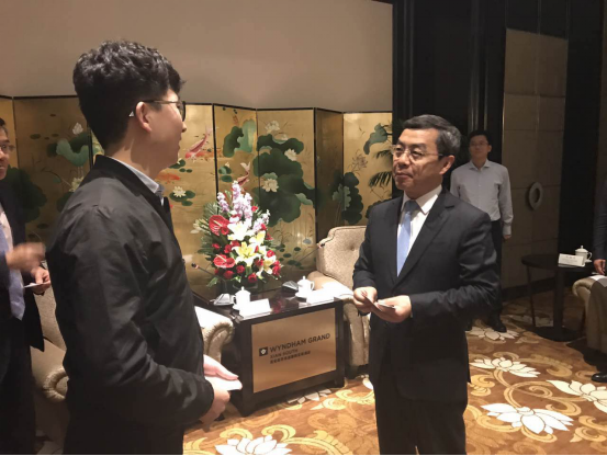 ofo聯(lián)合創(chuàng)始人薛鼎和西安市長(zhǎng)上官吉慶親切扳談