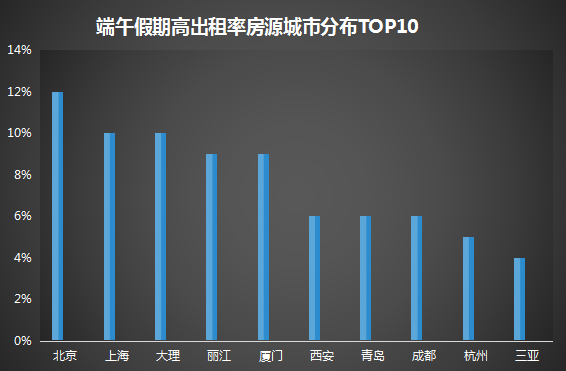 隨著季節(jié)變更,夏季氣溫持續(xù)走高,南方城市因為氣溫相對較低,成為端午假期出游人群的首選城市。據(jù)木鳥短租《 2017 端午出游住宿陳訴》顯示,假期期間,高出租率房源城市分布前十名里,南方城市占到了八成,尤其是上海、大理、麗江、廈門等清新文藝感十足的城市,更是受到出游群體的青睞。