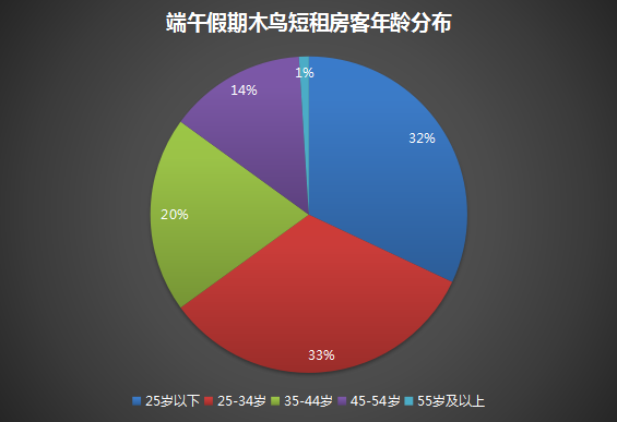從以上陳訴數(shù)據(jù)可知, 25 歲以下的人群占比32%。端午假期臨近結(jié)業(yè)季,多數(shù)高校結(jié)業(yè)答辯已經(jīng)完成,不少學(xué)生選擇以一場結(jié)業(yè)旅行來結(jié)束本身的大學(xué)生涯。藝龍大數(shù)據(jù)顯示,20%的結(jié)業(yè)生選擇從端午或者端午前開始他們的結(jié)業(yè)旅行, 95 后成為此次端午出游住宿的主力軍。如圖表所示,25- 34 歲占比33%,兩者之和占比一半以上,可見端午假期出游選擇民宿的人群多為90- 95 后,仍以年輕群體為主。