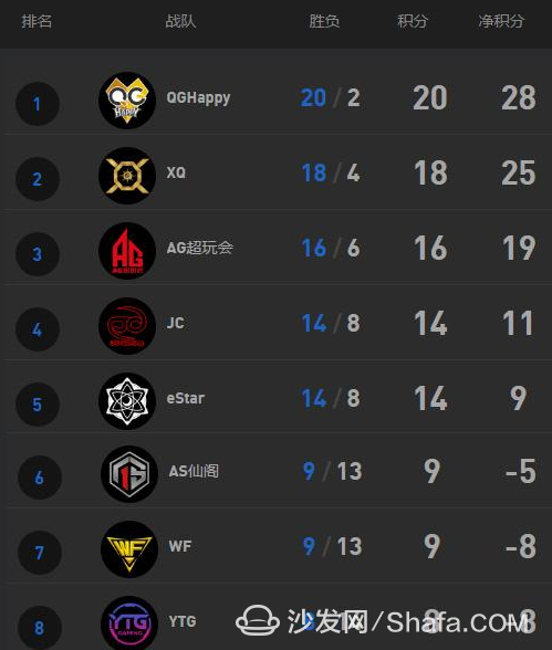 經(jīng)過了整個(gè)春季賽激烈的比賽,KPL春季常規(guī)賽前八名最終排名如下: