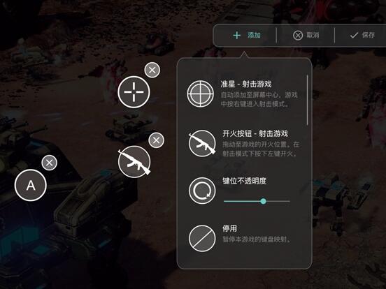 鍵盤映射2. 0 不但保存了此前版本的優(yōu)秀特質(zhì),而且對(duì)此類安卓FPS游戲做出了極大改善。此版本中,主要增加了“準(zhǔn)星-射擊游戲”、“開(kāi)火按鈕-射擊游戲”兩個(gè)功能鍵。