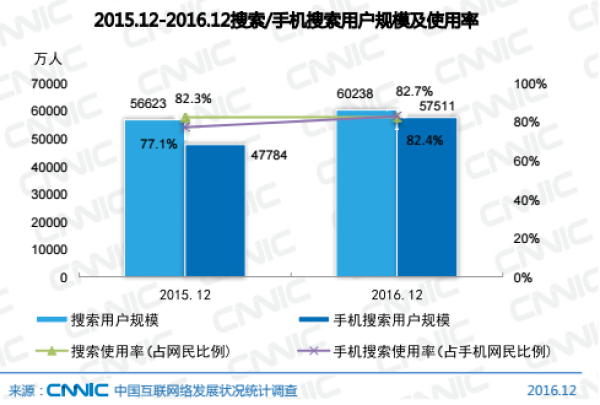 CNNIC在 2016 年 12 月底發(fā)布的統(tǒng)計數(shù)據(jù)顯示,國內(nèi)搜索用戶規(guī)模為6. 02 億人,其中手機搜索用戶規(guī)模為5. 75 億,手機搜索用戶在整體搜索用戶中所占比例高達95%。從增長率上能夠更清晰地看到這一移動化的趨勢,整體搜索用戶年增長率只有6.4%,而手機搜索用戶的增幅則高達20.4%。換句話說,所有的搜索引擎公司幾乎是站在同一起跑線上面對一個全新的市場。