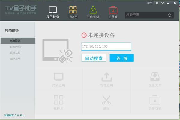 三、打開TV盒子助手,輸入剛才查看的創(chuàng)維電視ip并連接