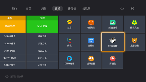 安置完成,運(yùn)行影視快搜電視直播軟件,找到直播菜單下的“企鵝直播”打開,即可在線不雅觀看NBA總決賽等體育賽事直播。