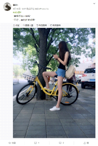 黃色的車身,辨識(shí)度高,且百搭,很多用戶僅僅只是為了與小黃車合影,便一入小黃深似海,,從此成為ofo小黃車的忠實(shí)粉絲。更有“ofo腿”這一專屬名詞被粉絲所開發(fā),成為引領(lǐng)時(shí)尚潮流的新風(fēng)尚,這就是小黃車的力量。