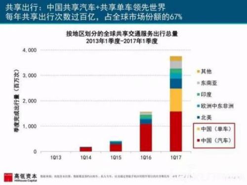 Meeker)在美國(guó)Code大會(huì)上發(fā)布了 2017 年的互聯(lián)網(wǎng)趨勢(shì)陳訴。這也是她第 22 次公布這一年度互聯(lián)網(wǎng)陳訴。陳訴中指出,中國(guó)已領(lǐng)先全球,成為規(guī)模最大的共享汽車和共享單車市場(chǎng),占據(jù)67%市場(chǎng)份額,遠(yuǎn)遠(yuǎn)超越北美和歐洲發(fā)達(dá)國(guó)家。
