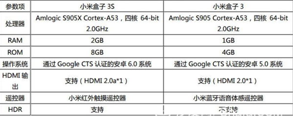 小米盒子3s和3c配置區(qū)別
