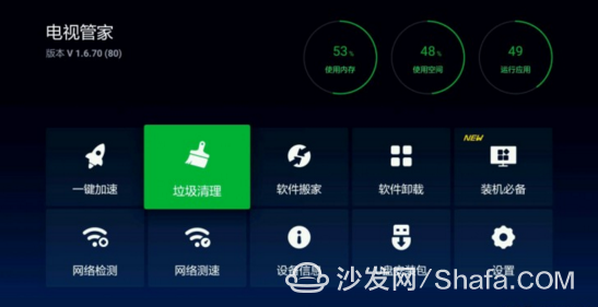除了系統(tǒng)自帶的清理工具,沙發(fā)管家工具箱也有很多清理工具,也能有效清理系統(tǒng)緩存,保障電視流暢運行。
