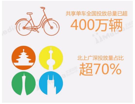而按照艾媒咨詢最新數(shù)據(jù)顯示,截至 2017 年 3 月中旬,全國共享單車投放總量已超 400 萬輛,而其中在北上廣深四座一線城市占比超70%。據(jù)悉,截止 3 月中旬,ofo已經(jīng)連接了 250 萬輛共享單車,摩拜單車共投放了 100 萬輛單車,不難看出,ofo市場占有率為近63%,是市場占有率為25%的摩拜的2. 5 倍。