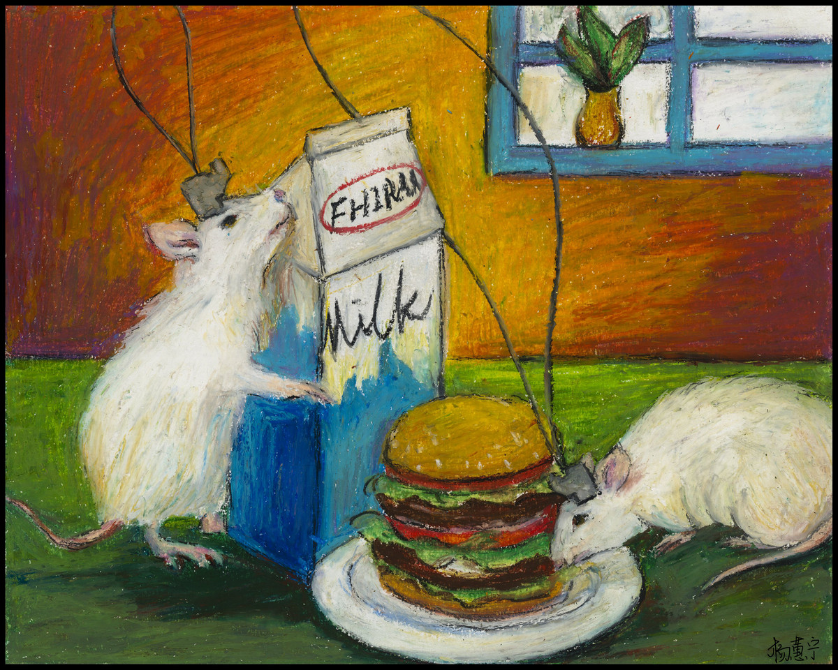 楊蕙寧按照新一代微型化雙光子熒光成像技術作畫