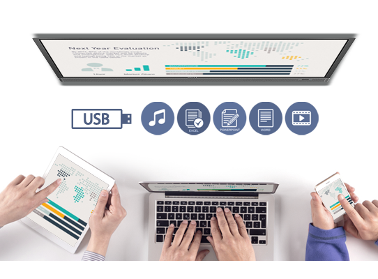 在傳統(tǒng)會(huì)議室里,商務(wù)投影儀只是小屏傳大屏的工具,而在明基智能商務(wù)系統(tǒng)里它可以完成更多的信息整合的動(dòng)作。好比明基智能投影儀除了可以調(diào)用移動(dòng)設(shè)備中的文檔,圖片等等之外,它還能從局域網(wǎng)中的電腦,NAS 等存儲(chǔ)設(shè)備中調(diào)用。