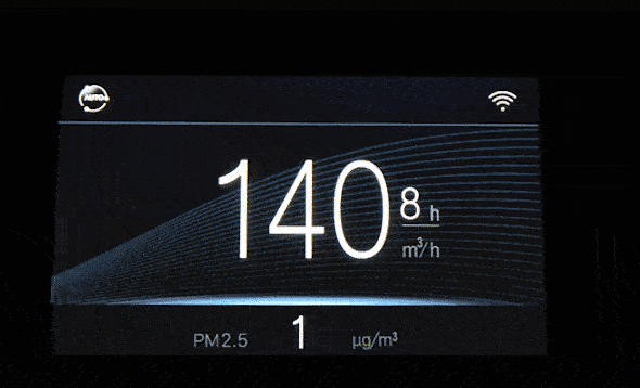 頂部的 5 英寸顯示屏可以實(shí)時(shí)顯示凈化器的工作狀態(tài)、當(dāng)前風(fēng)量、模式、空氣中PM2. 5 含量等一系列信息,顯示相當(dāng)全面。