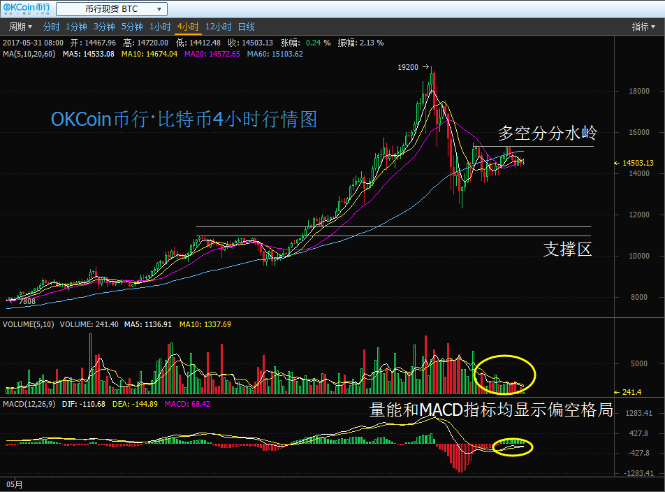 按照國內知名的比特幣交易平臺OKCoin幣行網(wǎng)的數(shù)據(jù)顯示,昨天( 5 月 30 日)幣價整體呈窄幅震蕩格局,開市后小幅向上攀升,最高漲至午盤的 15300 一線高位后回落,截止當日收盤基本悉數(shù)回吐所有漲幅。截止今日發(fā)稿前,價格未脫離盤整局面,最新交投于 14570 附近。