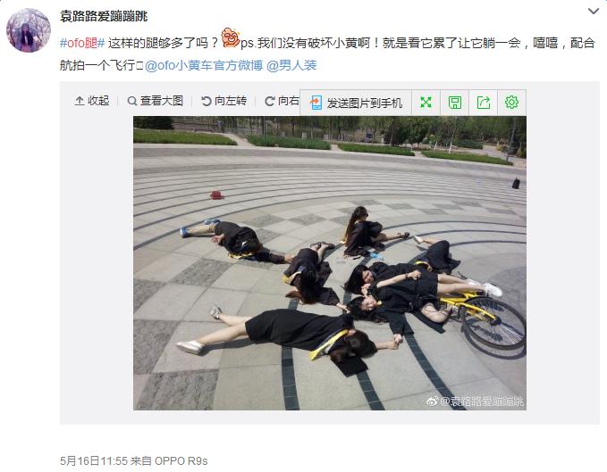 而對于某些腦洞奇大的人來說,ofo小黃車也是拍攝創(chuàng)意結(jié)業(yè)照的最佳朋友。好比這位“袁路路愛蹦蹦跳”的微博用戶曬出了本身拍的創(chuàng)意結(jié)業(yè)照,照片里面小黃車躺在地上,還有一票長腿妹子也躺在地上,說這是要讓小黃車歇一會兒?;蛟S走向社會之后每個人終將過上安分守紀的生活,但只要有夢想在,未來還是充滿了色彩。而在追逐夢想的路上,ofo小黃車將與所有人同行。