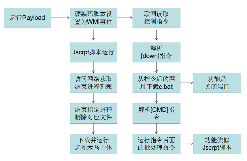 Payload中除了注冊(cè)WMI之外,還會(huì)拜候網(wǎng)絡(luò),獲取控制指令
